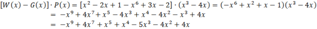 Aby rozwiązać zadanie wykonaj odejmowanie W(x) – G(x). Następnie pomnóż otrzymany wielomian przez P(x). Zredukuj jednomiany podobne i uszereguj wielomian malejąco.