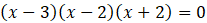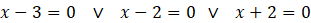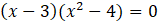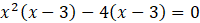 Aby rozwiązać równanie, przenieś wszystkie jednomiany na jedną stronę. Następnie pogrupuj wyrazy kolejno parami. Wyłącz z wielomianu przed nawias czynnik – 3. Skorzystaj ze wzoru skróconego mnożenia na różnicę kwadratów. Otrzymany iloczyn zapisz w postaci alternatywy równań reprezentujących każdy z czynników. Zsumuj rozwiązania do jednego zbioru.