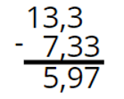 W tym zadaniu musisz obliczyć 13,3 – 7,33.