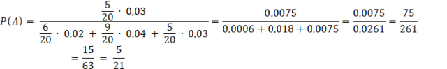 W tym zadaniu musisz obliczyć prawdopodobieństwo zdarzenia: wybrano samochód zielony, jeśli wiadomo, że jest wadliwie polakierowany, a fabryka produkuje jeden model samochodu w kolorach: białym, czerwonym i zielonym w stosunku 6:9:5, gdzie prawdopodobieństwo odpowiednio położonej powłoki lakierniczej wynosi odpowiednio 0,98, 0,96 i 0,97 i wybieramy jeden samochód.