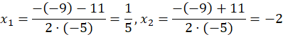∆ = (-9)2 – 4 · (-5) · 2 = ,