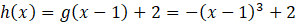Wykres funkcji h powstał w wyniku przesunięcia wykresu funkcji g o 1 jednostkę w prawo i 2 jednostki w górę, co jest jednoznaczne z tym, że wykres funkcji h powstał w wyniku przesunięcia wykresu funkcji g o wektor