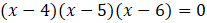 Równanie musi mieć tylko trzy rozwiązania: 4, 5, 6 i dziedziną muszą być wszystkie liczby rzeczywiste.