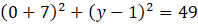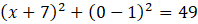 W tym zadaniu trzeba określić współrzędne punktów przecięcia osi układu współrzędnych przez okrąg: (x + 7)2 + (y – 1)2 = 49.