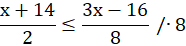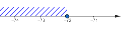 Pomnóż całe równanie przez 8, aby pozbyć się ułamków. Następnie przenieś wszystkie niewiadome na lewą stronę, a wiadome na prawą stronę. Podczas przenoszenia pamiętaj zmienić znak. Pozbądź się liczby przy x poprzez podzielenie równania przez liczbę znajdującą się przy x. Kiedy w nierówności dzielisz lub mnożysz całą nierówność przez liczbę ujemną, to znak nierówności obróć w drugą stronę. Wszystkie liczby mniejsze lub równe -72 należą do zbioru. Przedstaw to na osi liczbowej.