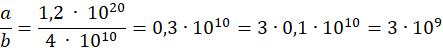 a ∙ b = 1,2 ∙ 1020 ∙ 4 ∙ 1010 = 1,2 ∙ 4 ∙ 1020 ∙ 1010 = 4,8 ∙ 1030