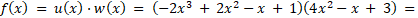 Wielomian f wyznaczamy wymnażając elementy nawiasów przez siebie, a wielomian g - stosując WSM: