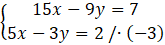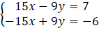 15x – 9y – 15x + 9y = 7 – 6