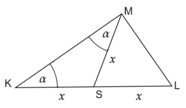 Naszkicuj rysunek pomocniczy. Oznacz te same boki trójkąta