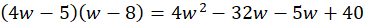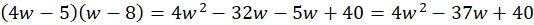 W tym zadaniu przedstaw wyrażenie (4w - 5)(w - 8) za pomocą sumy algebraicznej.