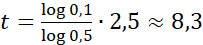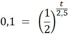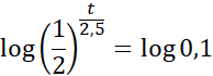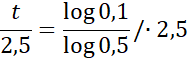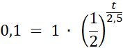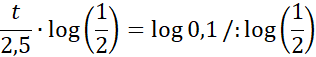 W tym zadaniu oblicz, po jakim czasie zawartość izotopu rydu 195Ir w próbce zmniejszy się z 1 mg do 0,1mg wiedząc, że okres połowicznego rozpadu tego izotopu wynosi 2,5 godziny, a masa m pierwiastka promieniotwórczego po upływie czasu t wynosi: