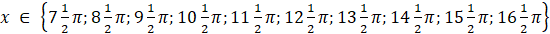 Funkcja cosinus ma miejsca zerowe dla argumentów postaci