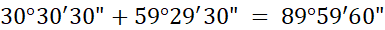 Z tego wynika, że β to 59º29’30”. Teraz można sprawdzić wynik: