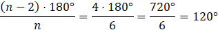 Oblicz miarę kąta w sześciokącie foremnym korzystając ze wzoru na kąt w n-kącie foremnym