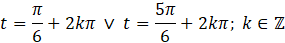 Rozwiąż równanie na zmiennej t, znajdując jego przykładowe rozwiązania i korzystając z okresowości funkcji sinus, wyznacz jego rozwiązania w zbiorze liczb rzeczywistych.