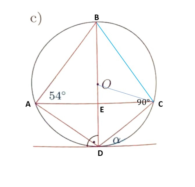 Jeżeli od punktu styczności prostej z okręgiem poprowadzimy cięciwę okręgu, to kąt ostry między cięciwą okręgu a styczną okręgu jest równy kątowi wpisanemu w okrąg, który jest oparty na tej cięciwie.