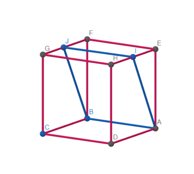 W tym zadaniu musisz zaznaczyć przekrój prostopadłościanu, który zawiera krawędź podstawy dolnej oraz środki dwóch równoległych krawędzi podstawy górnej.