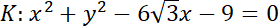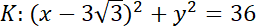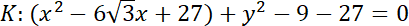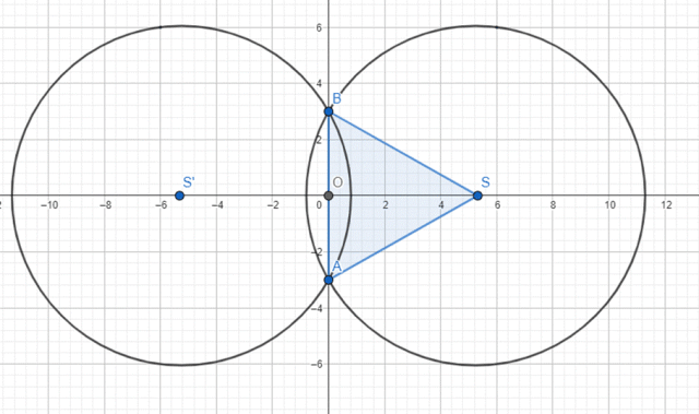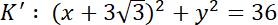 W tym zadaniu musisz obliczyć pole wspólnej części kół, jeśli ograniczają go dwa dane okręgi, z których okrąg K’ stanowi symetryczny obraz okręgu K w stosunku do początku układu współrzędnych.