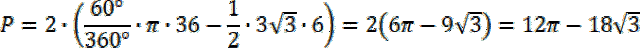 Pole części wspólnej to podwojona różnica pomiędzy polem wycinka koła o kącie