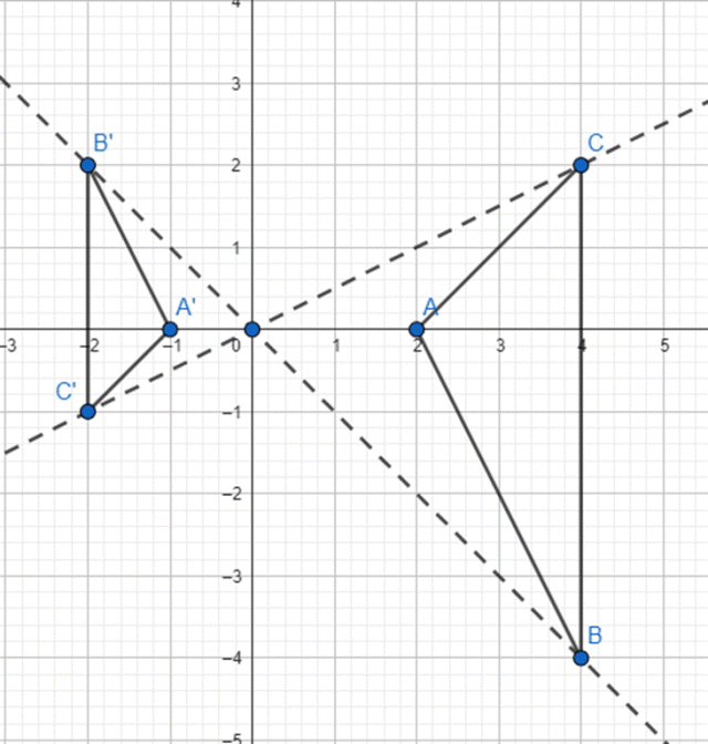 Narysuj obraz trójkąta ABC w jednokładności o środku O(0, 0) i skali