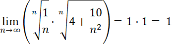 Rozdziel pierwiastek na dwa pierwiastki. Przy liczeniu granicy ułamki będą dążyć do zera, ale liczby pod pierwiastkiem dążą do 1, więc granica jest równa 1.