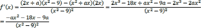 Najpierw wyznacz pochodną funkcji f oraz określ dziedzinę tej funkcji, oraz jej pochodnej. Zauważ, że skoro funkcja nie ma mieć ekstremów, to oznacza, że dla dowolnego x pochodna nie posiada miejsc zerowych i nie zmienia znaku. W takim razie wyróżnik trójmianu kwadratowego przyjmuje wartości niedodatnie. Z otrzymanej nierówności wyznacz wartości a.