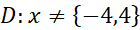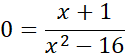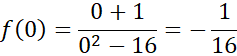 Przypomnij sobie wiadomość o ułamku zwykłym. Mianownik nie może być równy 0, więc dziedziną funkcji – przedziałem jej określoności – będą wszystkie argumenty x, które nie są równe -4 i 4. Miejsce przecięcia z osią OX obliczamy, przyrównując funkcję do zera. Miejsce przecięcia z osią OY znajdziemy, podstawiając za każdy x we wzorze liczbę zero – wynikiem będzie taki y, w którym funkcja przecina OY.