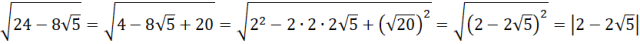 24 pod pierwiastkiem rozbij na sumę liczb 4 i 20, a następnie zauważ wzór skróconego mnożenia na kwadrat różnicy: