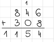 W tym zadaniu uzupełnij zapis dodawania pisemnego tak, by był on poprawny.