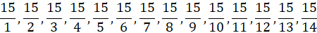 Ułamek niewłaściwy to taki, w którym licznik jest większy od mianownika. Zapisz wszystkie liczby naturalne mniejsze od 15 i stwórz z nimi ułamki.