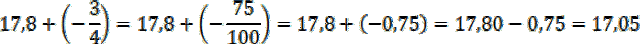 Rozszerz ułamek zwykły do mianownika równego 100 i zapisz go w postaci dziesiętnej (po przecinku znajduje się liczba z licznika). Zmień znak działania, jednocześnie zmieniając drugą liczbę na przeciwną, dopisz potrzebne zero na końcu części ułamkowej odjemnej.