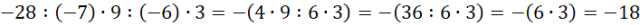 W mnożeniu i dzieleniu znak wyniku zależy od ilości minusów w działaniu – jeżeli jest parzysta, wynik będzie dodatni, a jeżeli nieparzysta – ujemny. Możesz od razu zredukować minusy.