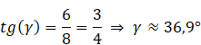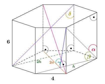 Wyznacz wartości funkcji trygonometrycznych: sin(α), cos(β), tg(γ), tg(δ), a następnie wyznacz miary tychkątów w ostrosłupie prawidłowym czworokątnym o długości krawędzi podstawy 6 i długości krawędzi bocznej 8.