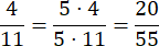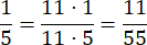 rozszerzyć do mianownika 55, należy licznik i mianownik pomnożyć przez wynik z działania: 55 : 11 = 5, czyli przez 5: