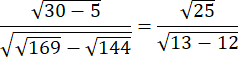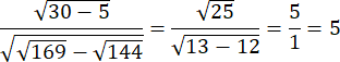 Następnie oblicz pierwiastek w liczniku, a w mianowniku wykonaj odejmowanie, by również móc obliczyć pierwiastek: