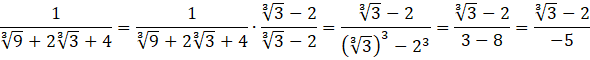Aby usunąć niewymierność z mianownika skorzystaj ze wzoru skróconego mnożenia na różnicę sześcianów. Rozszerz licznik i mianownik ułamka razy
