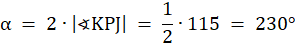 W tym zadaniu skorzystaj z własności kątów środkowych i wpisanych.