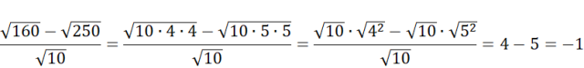Rozłóż liczby pod pierwiastkami na iloczyny mniejszych liczb, a następnie korzystając z własności działania na pierwiastkach oblicz wyrażenie ( .