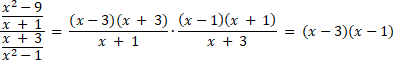 Zapisz dzielenie jako mnożenie przez odwrotność i uprość licznik z mianownikiem używając wzoru skróconego mnożenia