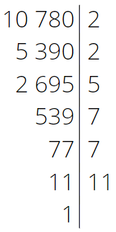 NWD(840, 10 780) = 2 ∙ 2 ∙ 5 ∙ 7 = 140