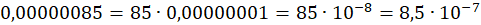 W tym zadaniu przedstaw 85 stumilionowych za pomocą notacji wykładniczej.