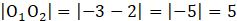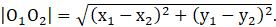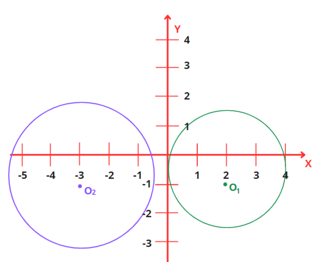 Oznaczamy środki okręgów, odmierzamy ich promienie i rysujemy w układzie współrzędnych. Odległość między środkami okręgów o środkach