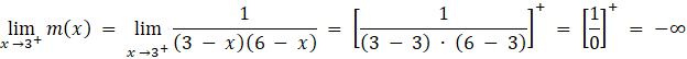 Funkcja m ma taką samą granicę przy x dążącym do 3 z prawej strony, jak granica