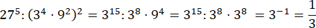 Zapisz podane liczby w postaci potęgi liczby 3. Następnie pamiętaj, że dzieląc potęgi o tych samych podstawach, musisz odjąć od siebie wykładniki, a podstawa pozostaje bez zmian. Natomiast mnożąc potęgi o tych samych podstawach, musisz dodać do siebie wykładniki, podstawa pozostaje bez zmian.