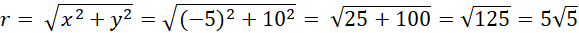 W tym zadaniu musisz wyliczyć ile wynoszą wartości poszczególnych funkcji trygonometrycznych kąta, na którego ramieniu końcowym leży punkt P (-5, 10).