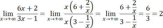 , wyciągając najwyższy czynnik przed nawias w liczniku i w mianowniku i zauważ, że granica jest właściwa.