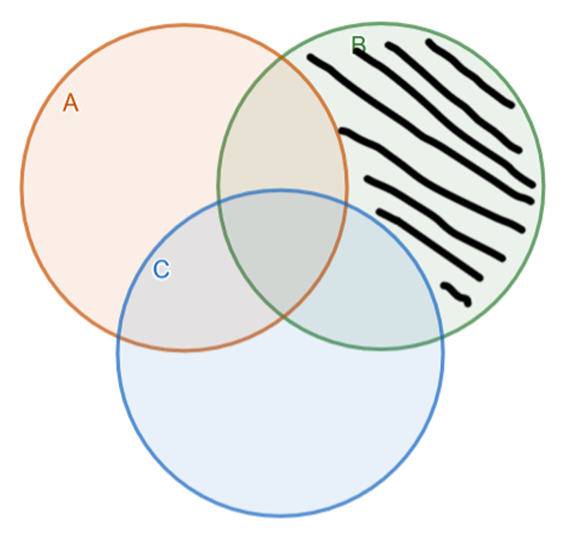 oznacza elementy zawarte w zbiorze B bez elementów zawartych w zbiorach A lub C, a zapis