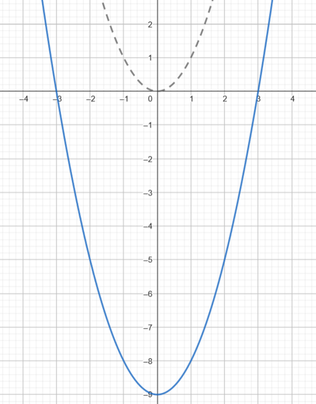 musisz każdy punkt znajdujący się na wykresie narysowanej funkcji przesunąć o 9 jednostek w dół.