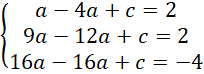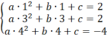 podstaw współrzędne punktów A, B, C. Zauważ, że powstanie układ trzech równań z trzema niewiadomymi. Rozwiąż je i zapisz wzór funkcji kwadratowej dla wyznaczonych wartości współczynników