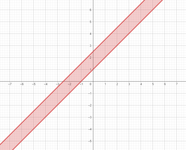 Przedstaw na płaszczyźnie zbiór punktów, które spełniają układ nierówności {xy+102x2y+50.